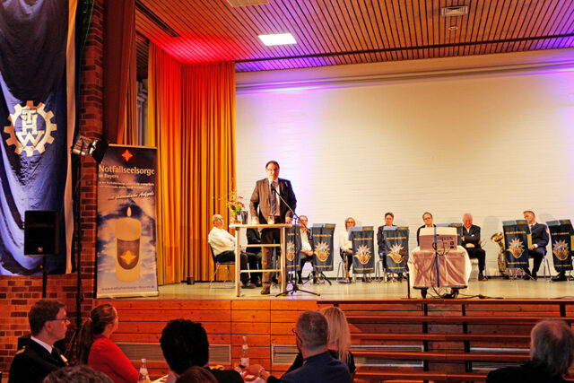 Herzing machte sich in seinem Grußwort und hob die Initiativen für eine dauerhafte und verlässliche Finanzierung des PSNV stark, einschließlich eines Ausbaus des Lohnersatzes für Ehrenamtliche des PSNV-Dienstes analog zu Feuerwehr- und Katastrophenschutzkräften hervor.