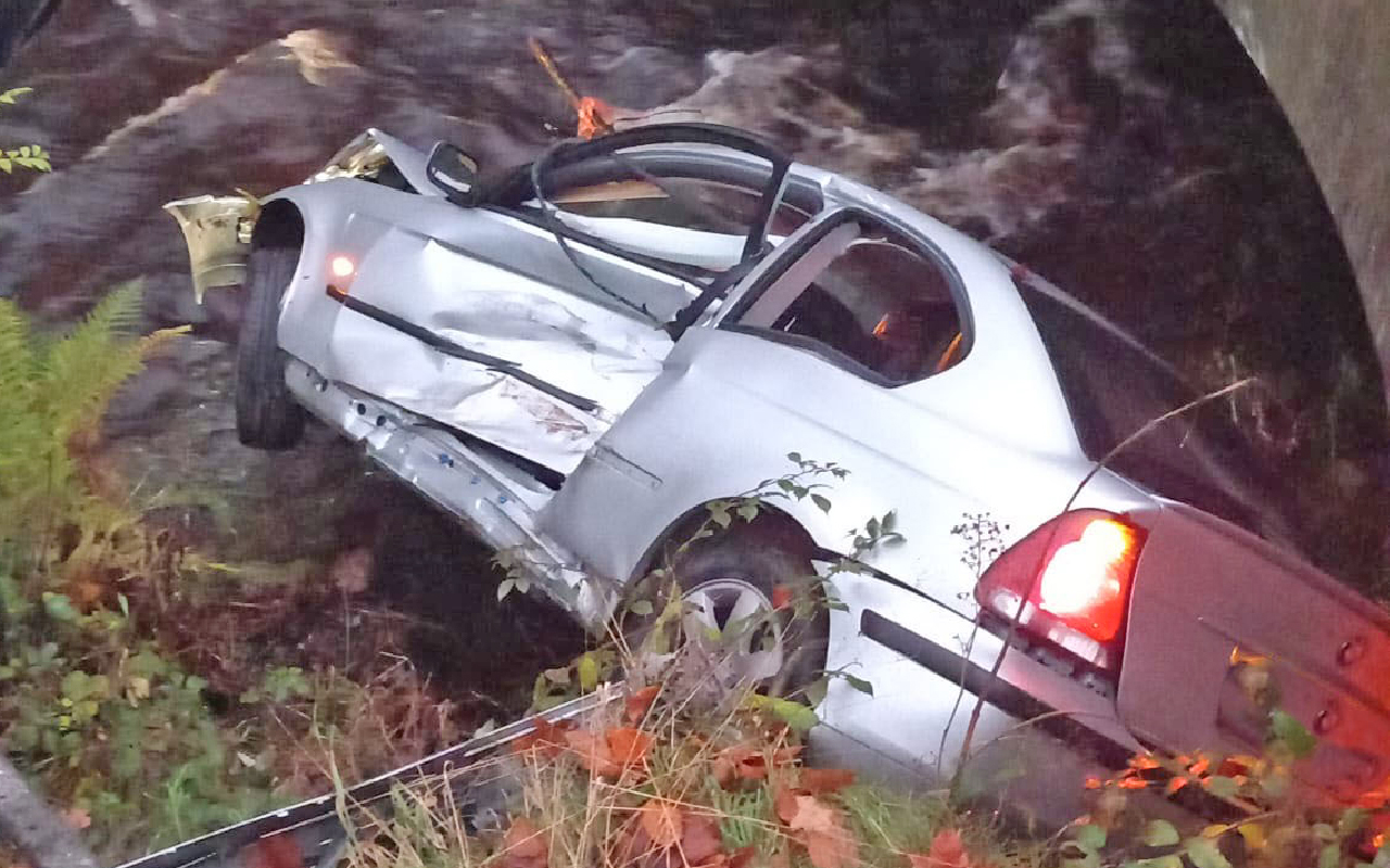 Alarm für BRK und Feuerwehr am 28.10.2025 um 16:05. Bei Escherlich ( Gde. Bad Berneck ) sei ein Auto in den Weißen Main gestürzt.