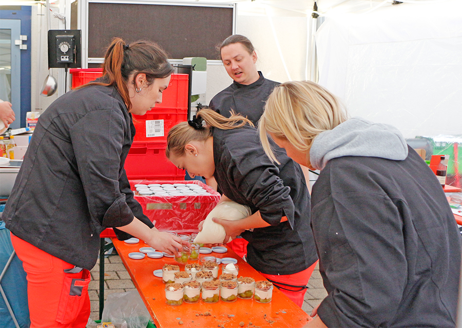Für rund 300 Teilnehmende der jährlichen Personalfeier des BRK-Kreisverbandes Bayreuth zauberte das Team dabei ein drei¬gängiges Menü mit mehreren Hauptspeisen zur Auswahl – selbstverständlich frisch aus der Feldküche.