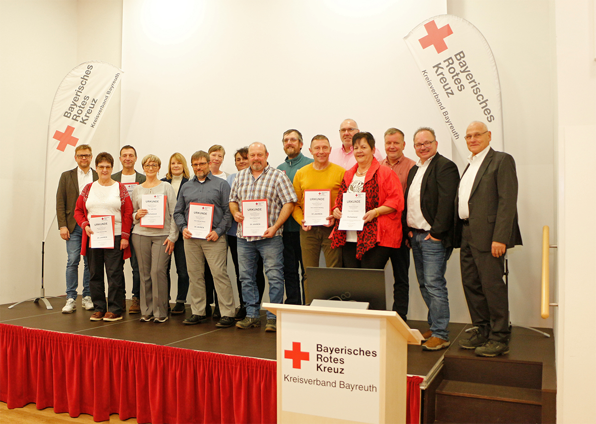 Der BRK-Kreisverband Bayreuth dankt allen Geehrten herzlich und gratuliert den Jubilarinnen und Jubilaren zu ihrem Betriebsjubiläum.
