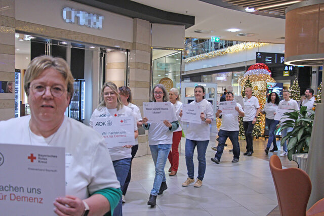 Mit einer beachtenswerten Spontan-Aktion im Rotmain-Center Bayreuth haben die AOK Bayreuth und der BRK-Kreisverband Bayreuth am Mittwoch, 10. Dezember 2025, gemeinsam ein deutliches Zeichen für Menschen mit Demenz gesetzt. Unter dem Motto „Wir machen uns stark für Demenz“ rückten die beiden Gesundheitspartner ein Thema in den Mittelpunkt, das immer mehr Familien in Bayern betrifft – und dennoch häufig tabuisiert wird.