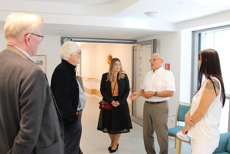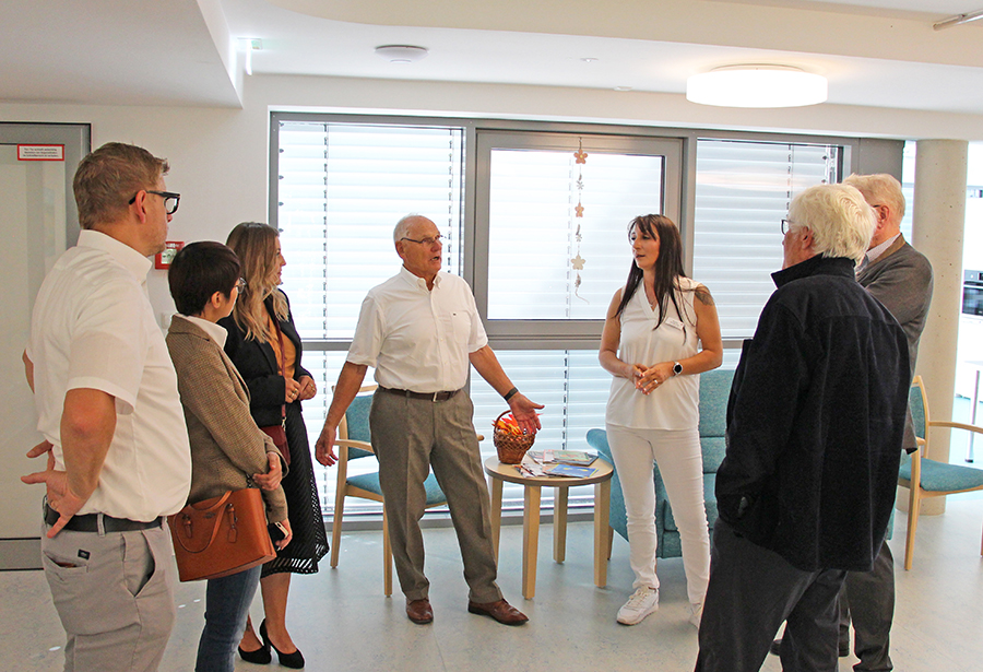Besonders erfreut zeigte sich Einrichtungsleitung Pamela Ruckdäschel und ihr Team über den Besuch von Bayreuths Oberbürgermeister, Thomas Ebersberger, der AOK-Direktorin Bayreuth-Kulmbach, Melanie Heinlein-Lodes und dem Vorsitzenden des Bayreuther Seniorenbeirats, Klaus Harmann. Gemeinsam informierten sie sich über das moderne Pflegekonzept und die vielfältigen Angebote der Einrichtung.